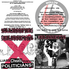 DOWNLOAD ONLY (FREE, Donations welcome) Released: 1st August 2011 Compilation of all our recent singles (not including Destruction Day) and compilation tracks along with an exclusive studio recording of The God Delusion. 1. The Death Of Freedom 2. Liars, Cheats, Thieves And Politicians 3. Dumped On The Scrapheap 4. Nothing To Lose (But Our Chains) 5. The God Delusion Availability: The CD version is no longer available, but you can download it as Mp3, Flac etc from http://theblissetts.bandcamp.com |