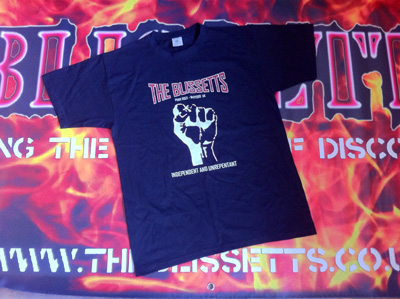 T - SHIRTS NOW AVAILABLE! Full details on the T- Shirts will be posted on here in the next few days, unfortunately we totally underestimated the interest in them and will be looking at a second print run in the next week or so. TICKETS STILL AVAILABLE FOR THE BLISSETTS GIG WITH THE ANTI-NOWHERE LEAGUE Tickets are still available for our gig with the Anti-Nowhere League on Saturday 2nd May at The Flag in Watford. You can get them online here or from the bar in The Flag. However, they are selling fast so keep an eye on our Facebook and Twitter pages and we'll keep you up to date with the latest ticket news. The gig will be our first performance this year and the first to feature new bassist Andy. It's going to be an awesome night, which could fast become a fucking mental one if Watford FC win the Championship title on the same day! The Blissetts guitar hero Arup has finally had his long awaited stomach operation and is recovering well. We wish him all the best. MERCHANDISE After being moaned at for years, we are finally getting some T-Shirts done, the artwork has gone off to the printers and we should have them in time for the gig, full details soon! We are also getting some badges done and possibly another small run of the 'We're The Blissetts, Who The Fuck Are You?' CD, taking the CD run up to around 600 copies since it was released. |
