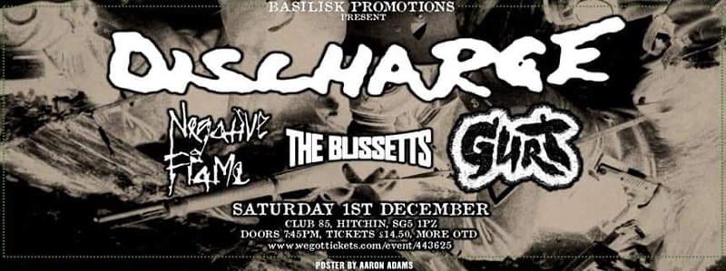 DISCHARGE GIG TICKET DETAILS Tickets are available now for our gig supporting the legendary DISCHARGE on Saturday 1st December. The gig takes place at Club 85 in Hitchin, yes, a proper music venue rather than the back room of a pub! granted, there's a pub downstairs, but that's not the point as Club 85 is a fantastic venue. Paul and Arup have both performed there with Jesus Hooligan, but this will be the first visit for The Blissetts, so cheers to David at Basilisk Promotions for putting us on. Joining us on the bill are the recently confirmed Gurt and Negative Frame. Anyone who knows their stuff about the heavier end of the music spectrum will know that Discharge weren't just an influence on punk bands, but also their sound and style played a massive part in shaping thrash metal, and if it wasn't for them, the likes of Metallica, Slayer and Anthrax probably wouldn't sound like they do today! Tickets are £14.50 in advance, any left will be available on the door for more! |